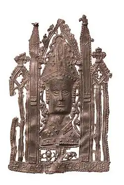 Enseigne en alliage de cuivre, représentant probablement saint Thomas Becket.