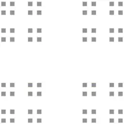 Une autre version de l'ensemble de Cantor est le carré de Cantor. Il est construit sur le même principe général, mais basé sur un carré : on considère un carré que l'on découpe en 9 carrés de même taille, et on supprime tous les carrés n'étant pas dans un coin du carré de départ. L'ensemble est construit de façon itérative en répétant cette action sur les nouveaux carrés. Ce n'est rien d'autre que le produit cartésien d'un ensemble de Cantor par lui-même (à ne pas confondre avec le tapis de Sierpiński).