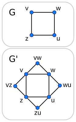 Soit <G, k> une instance du problème de couverture de sommets. On construit (cf figure ci-contre) un nouveau graphe G' , en ajoutant à G de nouveaux sommets, pour représenter les arcs du graphe initial G. Précisément, pour tout arc <v, w> de G, ajoutons un sommet vw et les arcs <v, vw> et <w,vw>.