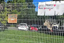 - ↑ « VIDÉO. Pau : « Ici, ici, c’est Espeso ». Au moins 700 personnes ont manifesté en soutien du directeur de l’Immaculée-Conception », sur sudouest.fr, Sud Ouest, (consulté le ).