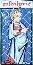 Ensenhame personnifié par un roi dans le Breviari d'amor de Matfre Ermengau du XIVe siècle.