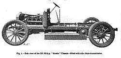 Un système d'entraînement à chaîne utilise une ou plusieurs chaînes à rouleaux pour transmettre la puissance à partir d'un différentiel vers l'essieu arrière. Ce système permet un grand mouvement vertical de l'axe (par exemple, sur les bosses), et est plus simple à concevoir et à construire qu'un arbre de transmission rigide dans une suspension. En outre, il avait moins de poids non suspendu aux roues arrière que l'arbre Hotchkiss, qui avait le poids de l'arbre de transmission et du différentiel en plus. Cela signifiait que le véhicule avait une conduite plus souple. Les masses non suspendues plus légères permettaient à la suspension de réagir aux bosses de manière plus efficace.