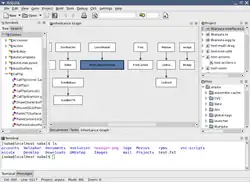 - Des outils d'analyse du code source. Par exemple un générateur de graphique qui permet d'obtenir le diagramme en arbre de l'utilisation d'une fonction du programme[2].