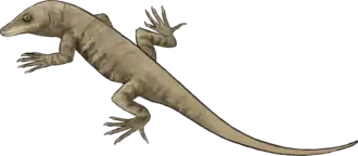 - ↑ (en) Susan E. Evans et Magdalena Borsuk−Białynicka, « A small lepidosauromorph reptile from the Early Triassic of Poland », Paleontologica Polonica, vol. 65, , p. 179–202 (lire en ligne)