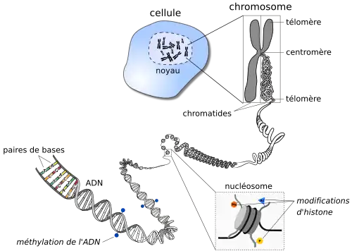 L'épigénétique (mot-valise de épigenèse et génétique[2]) est la discipline de la biologie qui étudie la nature des mécanismes modifiant de manière réversible, transmissible (lors des divisions cellulaires) et adaptative l'expression des gènes sans en changer la séquence nucléotidique (ADN)[3]. Alors que la génétique correspond à l’étude des gènes, l’épigénétique s’intéresse à une « couche » d’informations complémentaires qui définit comment ces gènes sont susceptibles d'être utilisés par une cellule.