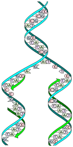 L'expression d'un gène peut également être régulée par une modification chimique de l'ADN : la méthylation ; précisément la méthylation de cytosine en 5-méthylcytosine des paires de base (ou dimères) C-G[55].