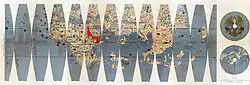 Ensuite Georg Glockendon a peint les terres et les mers, ainsi que divers symboles, puis Petrus Gagenhart a réalisé la partie « écriture ».