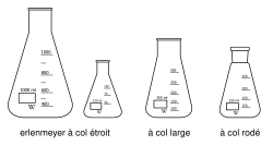 Il est constitué d'une base conique et d'un col cylindrique ; il existe différents types d'erlenmeyers selon la forme de ce col, la plus courante étant l'erlenmeyer à col étroit.