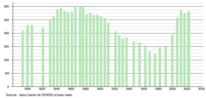 - ↑ Fiches Insee - Populations de référence de la commune pour les années 2006, 2007, 2008, 2009, 2010, 2011, 2012, 2013, 2014, 2015, 2016, 2017, 2018, 2019, 2020, 2021 et 2022.