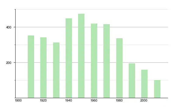 | 1930 | 313 | ▼ −8,75 % | |