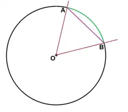 Dans le cas du cercle unité, la distance d induite par la distance euclidienne est la longueur de la corde, tandis que est la longueur de l'arc