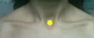 - latéralement par les tendons de muscles sterno-cléido-mastoïdiens recouverts par l'adhérence de la lame prétrachéale du fascia cervical au bord antérieur du fascia du muscle sterno-cléïdo-mastoïdien,