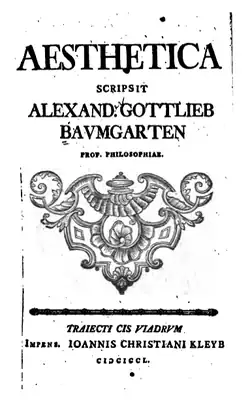 Première page du livre intitulé Æsthetica de Baumgarten, 1750. On lui doit ce néologisme.