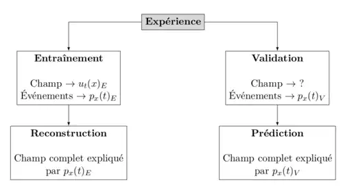 - Si l'estimation utilise les événements de la campagne de validation, on utilise le terme de prédiction. L'estimation porte sur le champ de vitesse complet de la campagne de validation.