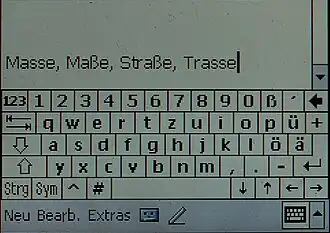 - Le clavier QWERTZ utilisé en Allemagne et en Autriche présente le ß (minuscule) en gravure sur le clavier, immédiatement à droite de la touche attribuée au chiffre 0. On frappe le ß par simple pression.