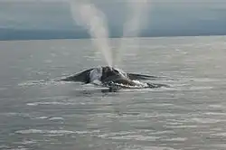 Jusqu'à récemment, presque tous les enregistrements de baleines franches du Pacifique Nord étaient des observations visuelles à partir de navires ou depuis la côte. Cependant, sur leurs aires d'été dans la mer de Béring et le golfe d'Alaska, les conditions maritimes sont souvent si difficiles, venteuses et/ou brumeuses que la détection des baleines franches connues pour être présentes est problématique. En 2015, une croisière de recherche de la NOAA dans la mer de Béring au large de Kodiak, axée sur la recherche de baleines franches, a détecté des signaux acoustiques à deux reprises émis par une baleine franche, mais dans aucun des cas les chercheurs n'ont pu localiser visuellement les baleines[62]. Les précédentes enquêtes de la NOAA dédiées dans le sud-est de la mer de Béring n'ont également eu qu'un succès sporadique dans la localisation visuelle des baleines franches. Une croisière de recherche dédiée d'un mois en août 2007 dans le sud-est de la mer de Béring n'a pas repéré de baleines franches[63].
