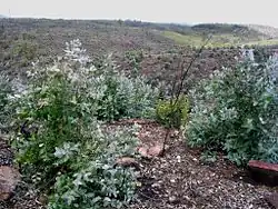 Forêt d'eucalyptus au Portugal, trois ans après un incendie : toute biodiversité a disparu.