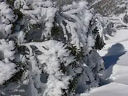 L'arbre ne perd pas ses feuilles en hiver mais sous la neige, les branches ploient et se débarrassent ainsi de leur fardeau.