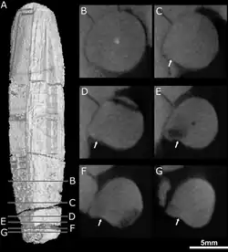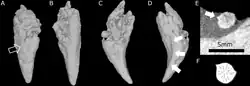 - ↑ (en) Hans-Dieter Sues, « A reptilian tooth with apparent venom canals from the Chinle Group (Upper Triassic) of Arizona », Journal of Vertebrate Paleontology, vol. 16, no 3, , p. 571-572 (DOI 10.1080/02724634.1996.10011340, S2CID 129631972)