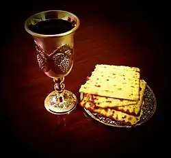 Ainsi, dans la tradition chrétienne, l'Eucharistie fut instituée par Jésus-Christ le soir du Jeudi saint au cours d'un repas qui, selon les synoptiques, était un repas pascal, mais qui, selon Jean, fut célébré un jour avant la fête juive de Pessa'h[16],[17],[18].