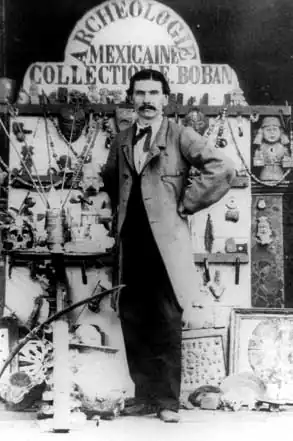 C’est seulement vers la fin du XXe siècle, suivant les recherches muséologiques sur la provenance et l’authenticité des collections, que la personnalité d’Eugène Boban a commencé à attirer l’attention du monde académique, aussi très peu est-il connu de sa vie. Antiquaire tout d’abord basé au Mexique (sous contrôle français de 1863 à 1867), il fait son entrée dans les documents officiels dans les années 1870 où il est mandaté, dans le cadre de la Commission scientifique du Mexique, pour recueillir des pièces représentatives des cultures pré-hispaniques. Le ministère de l’Instruction publique lui demande aussi d’envoyer des pièces pour l’exposition universelle de 1867.