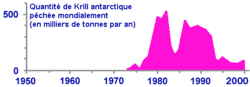 Graphique représentant la capture mondiale annuelle de E. superba, à partir de données de la ONUAA data[29].