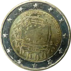 - ↑ (en) « 2015 - 30 years of the EU flag », sur le site de la Banque fédérale d'Allemagne (consulté le ).