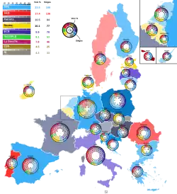 - ↑ Certaines listes nationales sont composées de plusieurs partis qui rejoignent chacun leur groupe politique européen après l'élection.