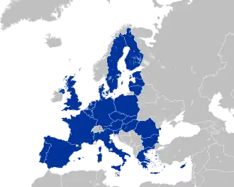 Entre 2004 et 2007, l'Union Européenne comptait 25 membres (UE-25). Elle s'est élargie en 2007 avec l'entrée de la Bulgarie et de la Roumanie, pour devenir l'UE-27.