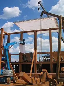 Cependant, l'arche ne sera jamais entièrement construite réellement. Seul un côté de l'arche sera terminé (tout comme ce fut le cas pour le Titanic de James Cameron en 1997), et de même le toit ne sera que partiellement construit et complété en studio grâce aux effets numériques.