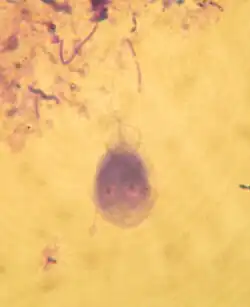 Les principaux parasites pathogènes qui peuvent être mis en évidence sont[1] :