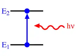 Lorsqu'un électron gagne de l'énergie, par exemple en absorbant l'énergie d'un photon, il peut sauter de son orbite à une orbite possédant une énergie potentielle supérieure. Un électron dans cet état est appelé électron excité. Cet état d'excitation n'est pas un état stable pour un électron et ne peut donc pas durer longtemps : puisqu'une orbite inférieure est disponible, l'électron va - à un moment donné - retourner de lui-même à l'orbite ayant une plus petite énergie potentielle. Il va alors rendre à l'environnement l'énergie qu'il avait gagnée, sous forme d'un photon, de chaleur...