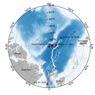 - ↑ « MOSAiC WebApp, 22 August 2020 », follow.mosaic-expedition.org (consulté le )