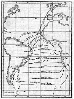 Le navire hydrographique Météor (de), ancien navire de guerre qui n'a pas été construit spécifiquement pour des recherches océanographiques, quitte Wilhelmshaven le avec l'océanographe Alfred Merz qui a organisé l'expédition. Le Météor est équipé des premiers sonars avec lesquels il produit le premier relevé détaillé du fond de l'océan Atlantique sud. L'enquête parvient à établir que la dorsale médio-atlantique est continue dans l'Atlantique Sud et se poursuit dans l'océan Indien au-delà du cap de Bonne-Espérance[2].