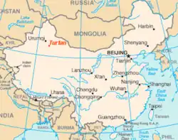 Tourfan est le site archéologique où les expéditions ont été montées par les Allemands, pour explorer et recueillir de précieux objets d'art et des textes écrits dans de nombreuses langues et écritures. Il a une superficie de 170 kilomètres carrés, se situe à 153 mètres (505 pieds) en dessous du niveau de la mer et est au nord de la Route de la soie[4].