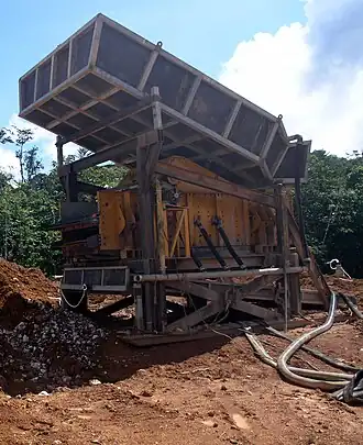 - soit directement criblée à travers une grille, la pulpe s'écoule ensuite sur le sluice.