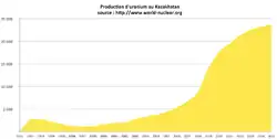 - ↑ (en) « Kazakh uranium output continues to rise », World Nuclear News, (lire en ligne, consulté le )