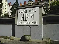 En 1920, Paul Mistral applique une série de lois de 1906 et crée un office public d'habitations à bon marché. Le projet rencontre des difficultés financières ; pour ne pas augmenter les loyers, Mistral emprunte de l'argent et réduit certaines prestations, rendant les premiers appartements très spartiates. Il encourage ensuite la création d'habitations à bon marché (HBM) améliorées, puis se montent des sociétés anonymes d'HBM[b 9]. Le premier projet présenté en est la création d'une cité-jardin où se situe l'actuelle cité Paul-Mistral, alors loin de la ville. Sept réalisations totalisent un peu moins d'un millier de logements entre 1922 et 1939[25]. Leur permis de construire a été délivré le le long du boulevard de L'Exposition (devenu boulevard Clemenceau)[26].