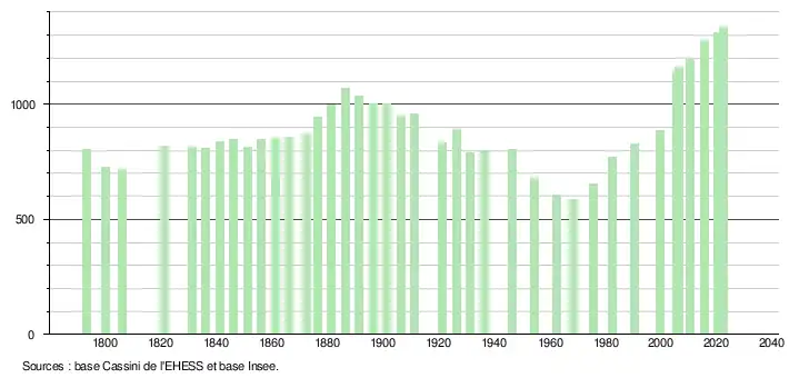 - ↑ Fiches Insee - Populations de référence de la commune pour les années 2006, 2007, 2008, 2009, 2010, 2011, 2012, 2013, 2014, 2015, 2016, 2017, 2018, 2019, 2020, 2021 et 2022.