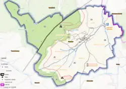 - ↑ Les ruisseaux intermittents sont représentés en traits pointillés.