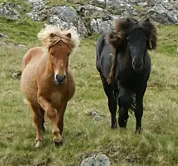 Un groupe de poneys des îles Féroé. | |
