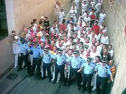 Cordon de police avant le début d'une encierro