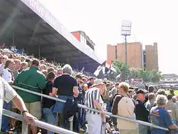 Vue sur la « Gegengerade » du stade Millerntor pendant un match de D3, août 2006.
