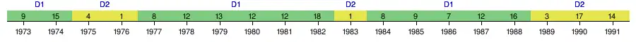 1983 2e 1er 60 42 25 10 7 78 36 +42 Seizièmes de finale