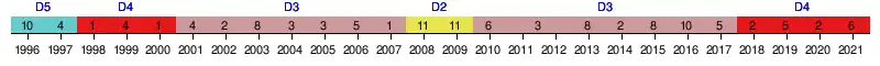 | 2021 | 6e | 34 | 24 | 10 | 4 | 10 | 56 | 36 | +20 | ||