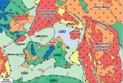 - ↑ Philippe Chèvremont et Martin Donsimoni, « Carte géologique harmonisée du département de la Corrèze (19). Notice géologique », sur infoterre.brgm.fr, (consulté le ).