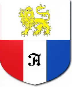 Les armes des Agrinali sont parti de gueules et d'azur, au pal d'or, brochant sur le parti et chargé d'un A à l'antique de sable, au chef de l'écu d'argent, brochant sur le parti et ch. d'un lion léopardé d'or.