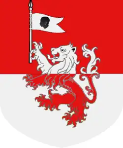Coupé de gueules sur argent au lion de l'un en l'autre