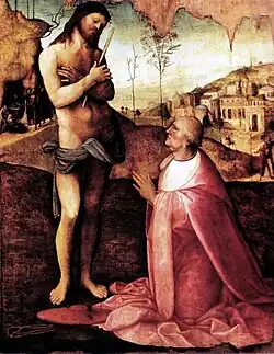 Oliviero Carafa devant le Christ souffrant par Cesare da Sesto, vers 1510.