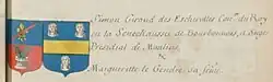 Le chef cousu d'azur, inspiré des armoiries du Bourbonnais est cité par Jean-François Louis d'Hozier[11], Viton de Saint-Allais, de Magny[12], et relayé par Gourdon de Genouillac.